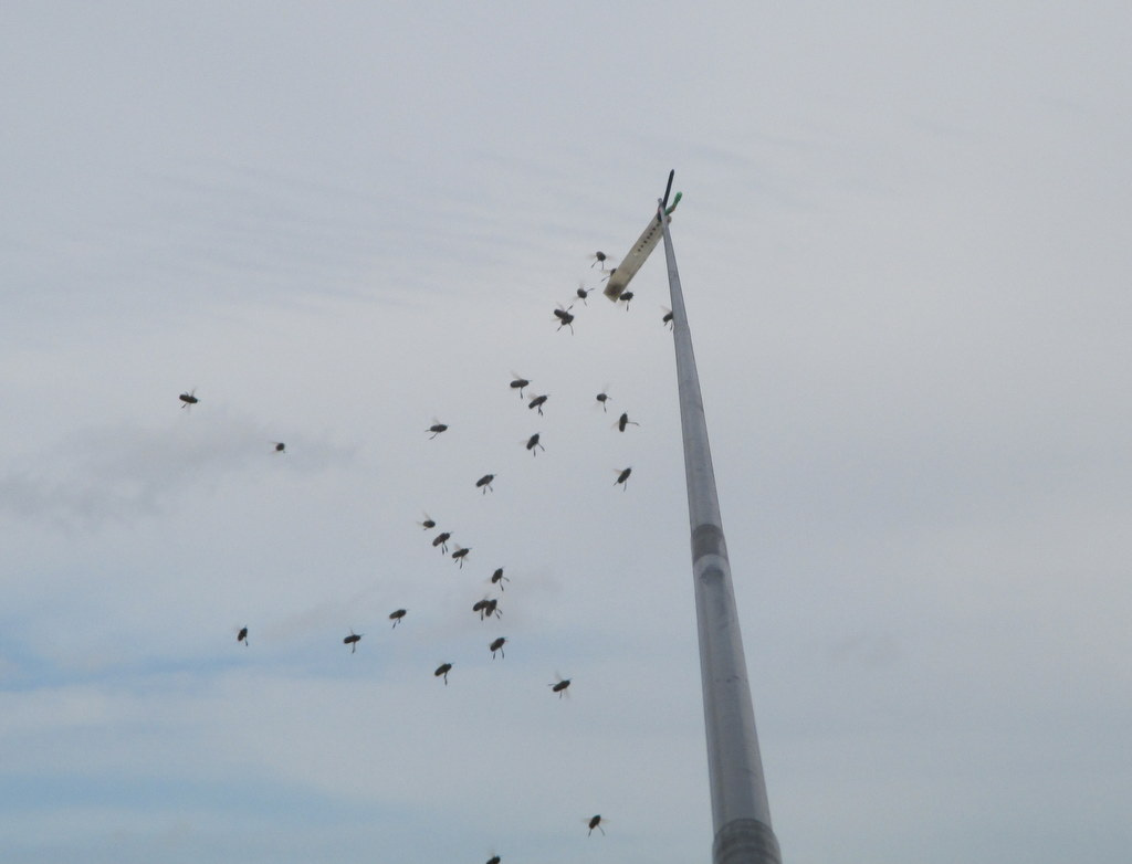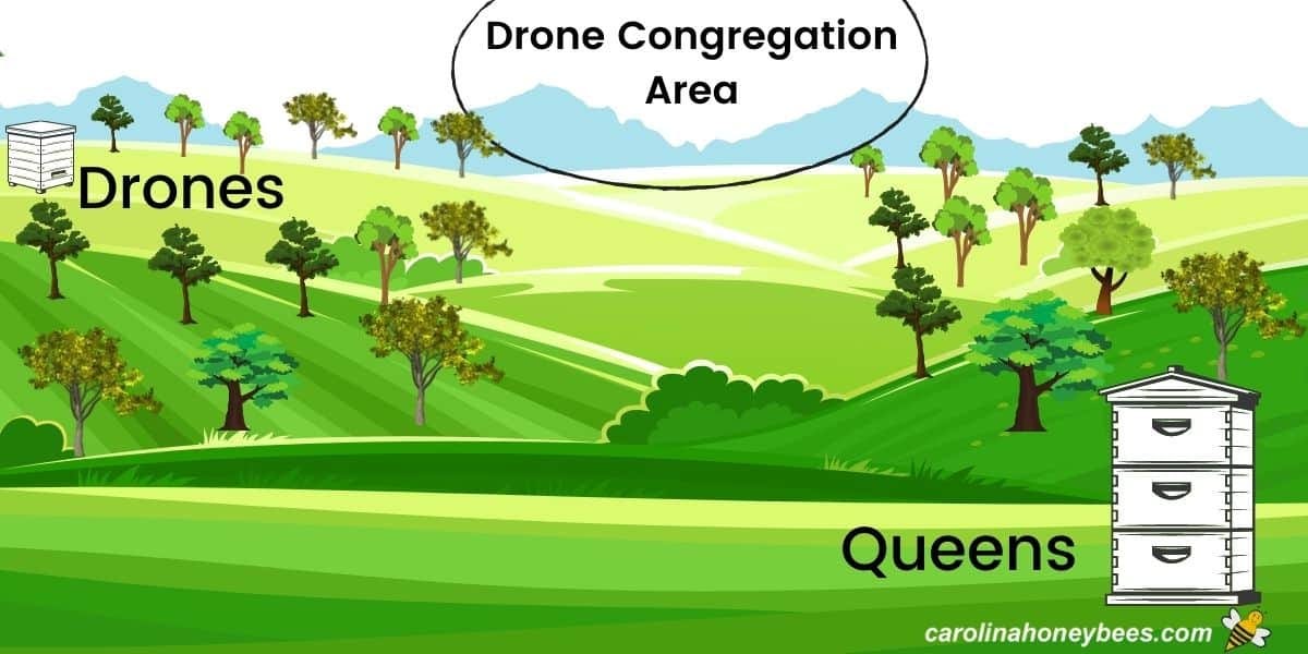 A drone congregation area (DCA) is a specific place where male honey bees gather and wait for young queens to visit. They are different from most mating areas because they are high above ground, and suspended in air. All honey bee mating takes place in these areas—never on the ground or in the hive. And the term we use that helps explain where these drones came from to congregate is called drift. We can have some control over the drift of our drones by paying attention to the landscape features that impact which way drones will fly and ultimately congregate. So while you don’t have much control over the beekeepers around you who may have weak genetics, you can control where you put your hive in relation to the other hives in your area and reduce some of that cross-pollination. The science on this is pretty much not understood, but we know it has a relationship with the horizon and is typically a key feature on the landscape, like the edge of a tree in a field, or an opening in a forest. We basically don’t really know but know it seems to be on these marginal spaces.
